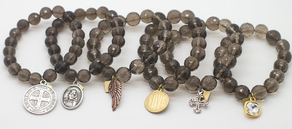 Faceted Smokey Quartz stones are for a neutral beautiful bracelet. Handmade.