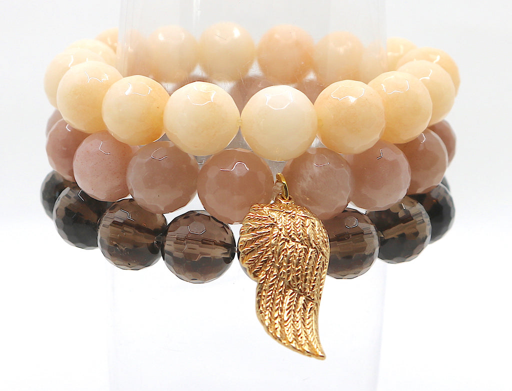A 14kt gold vermeil angel wing proudly enhances three faceted Blessings Bracelets.