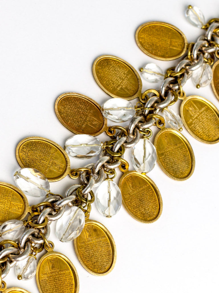 A set of vintage brass medals with the Lord's Prayer make this bracelet a showstopper!